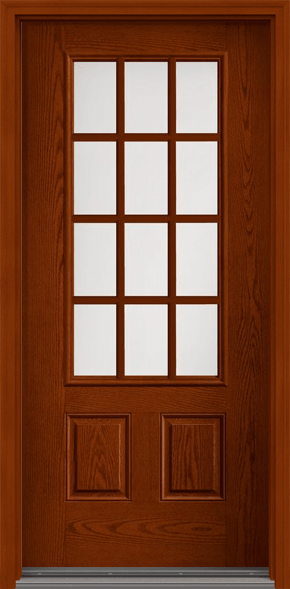 80" Satin Etch Colonial 12 Lite SDL Oak 3/4 Lite 2 Panel Fiberglass Single Door
