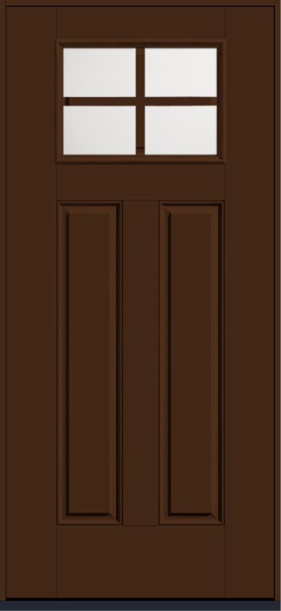 80" Satin Etch Craftsman 4 Lite 2 Panel SDL Smooth Fiberglass Single Door