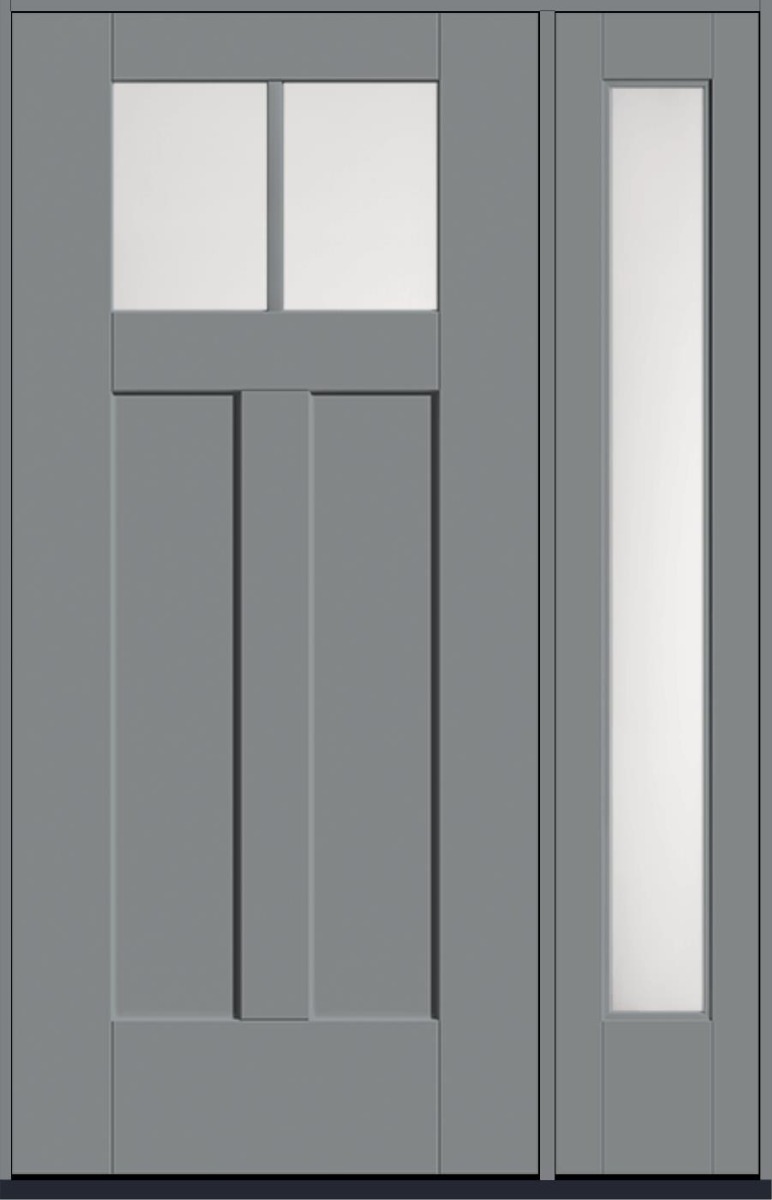 80" Satin Etch Craftsman Top View 2 Lite 2 Panel Shaker SDL Flat 1-1/8" Smooth Flush-Glazed Fiberglass Single Door, Full Sidelite