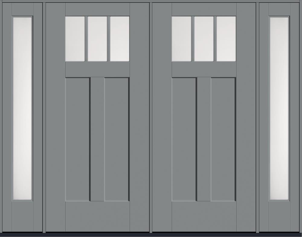 80" Satin Etch Craftsman Top View 3 Lite 2 Panel Shaker SDL Flat 1-1/8" Smooth Flush-Glazed Fiberglass Double Door, Full Sidelites
