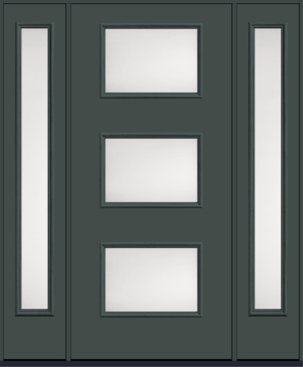 80" Satin Etch Modern Pulse Ari 3-Lite Smooth Fiberglass Single Door, Full Sidelites