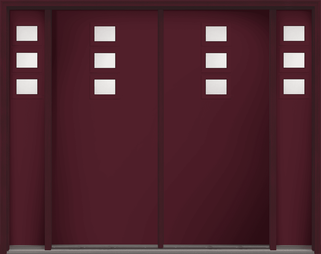 80" Satin Etch Modern Pulse Echo 3-Lite Top Center Cluster Smooth Fiberglass Double Door, Sidelites
