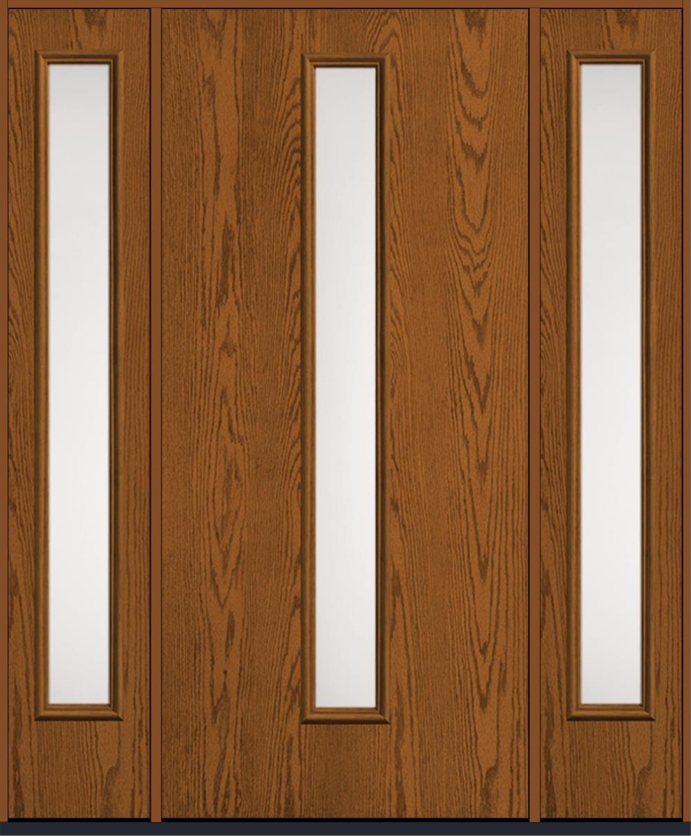 80" Satin Etch Modern Pulse Linea Centered Oak Fiberglass Single Door, Sidelites