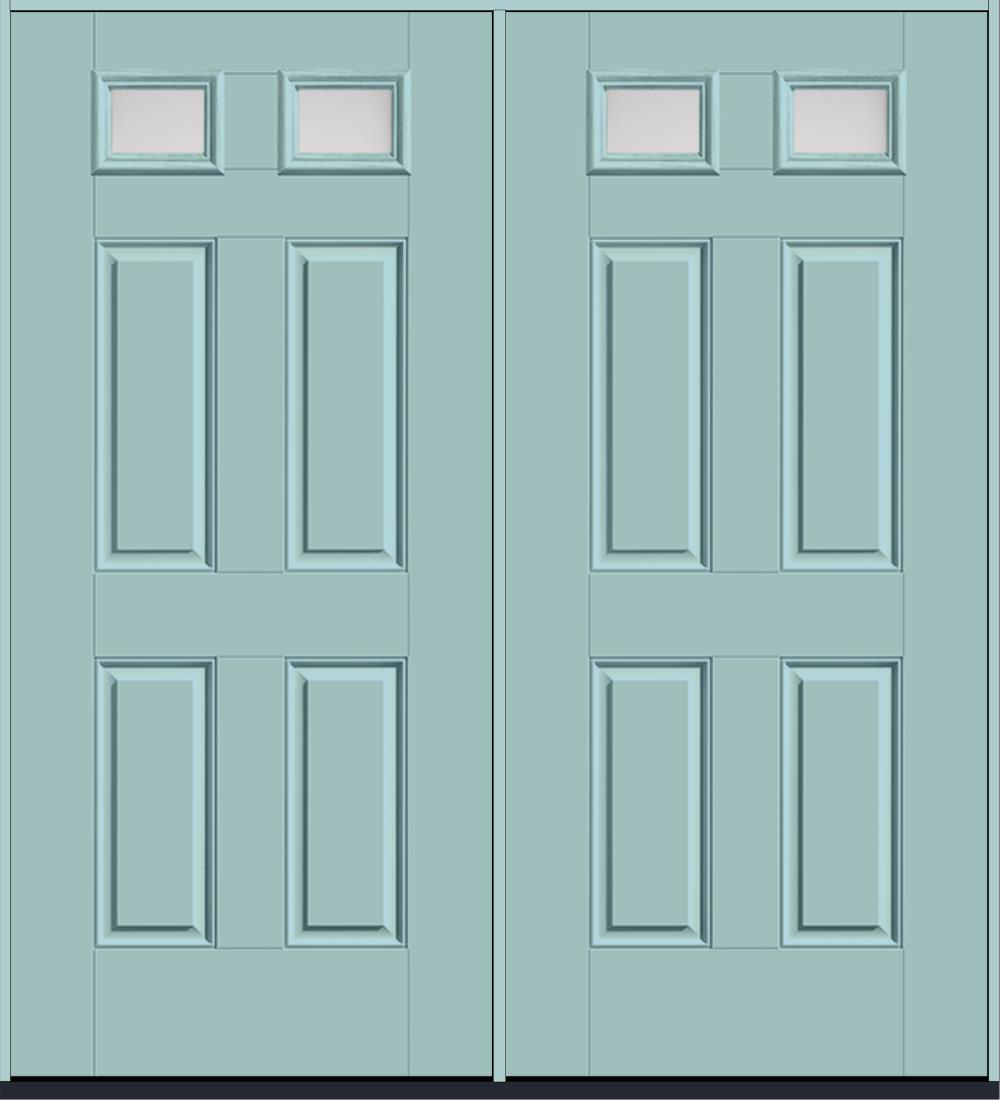 80" Satin Etch Top View 2 Lite 4 Panel Smooth Fiberglass Double Door