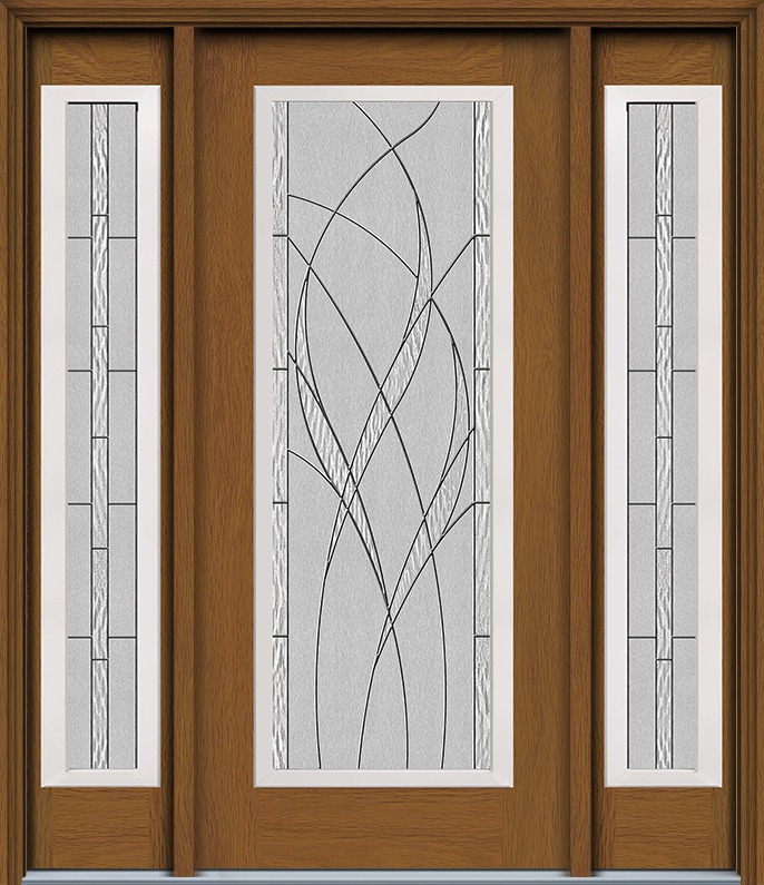 80" Waterside Full Lite Contemporary Woodgrain Fiberglass Door, Sidelites, WBD Impact