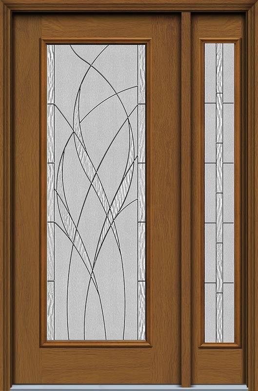 80" Waterside Full Lite Woodgrain Fiberglass Door, Sidelite, WBD Non-Impact