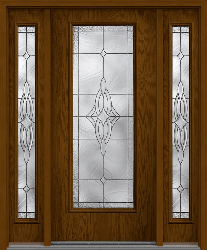 80" Wellesley Full Lite Oak Fiberglass Single Door, Sidelites