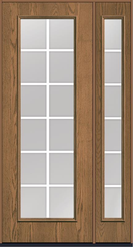 96 Low-E Colonial 12 Lite Flat Bar GBG Oak Full Lite Fiberglass Single Door,Sidelite , WBD Impact