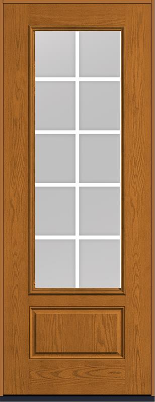 96 Low-E Colonial 10 Lite Flat Bar GBG Oak 3/4 Lite 1 Panel Fiberglass Single Door , WBD Impact
