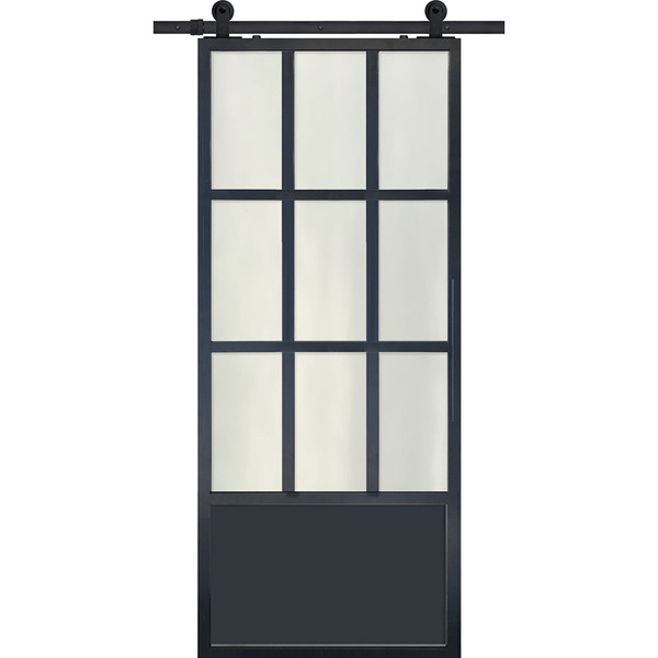 9 Lite 1 Panel Contemporary Metal Single Barn Door