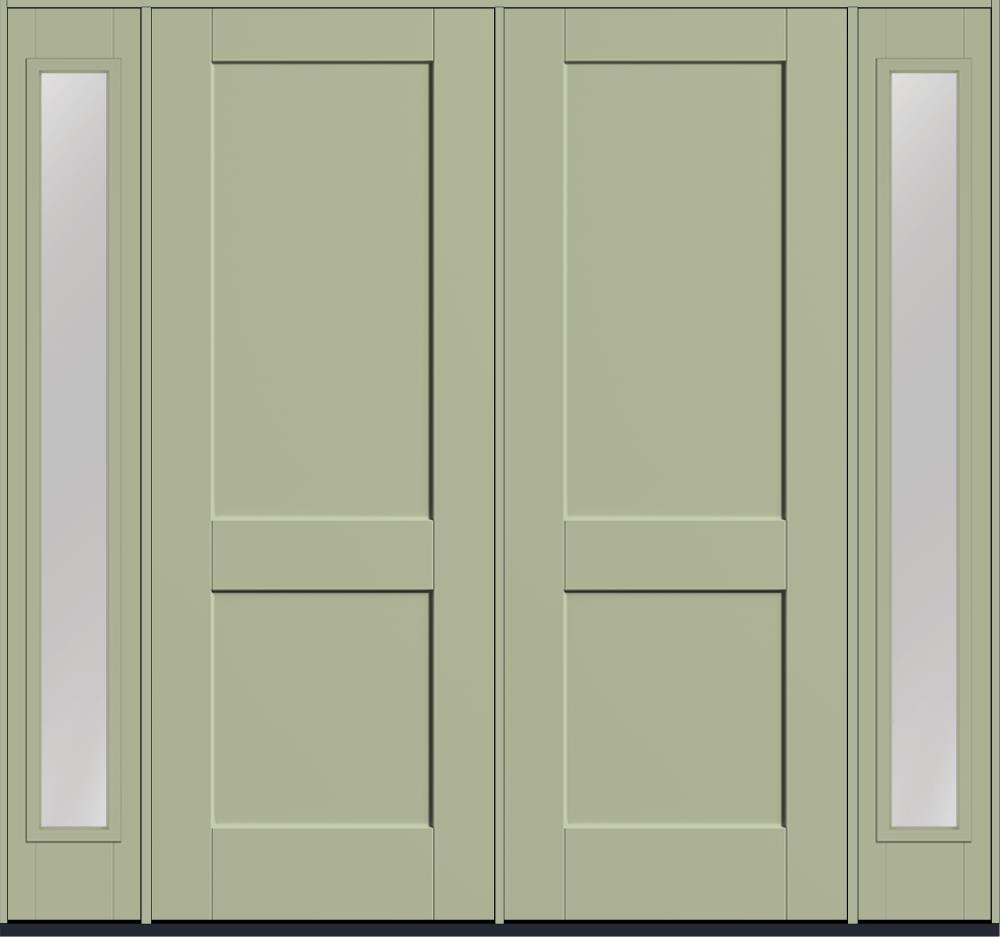 96" 2 Panel Craftsman Square Top Shaker Smooth Fiberglass Double Door, Full Sidelites