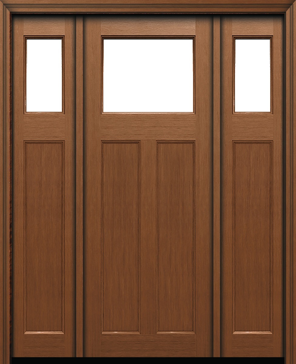 96" 2 Panel Top View Craftsman Fir Fiberglass Direct Glazed Single Door, Sidelites