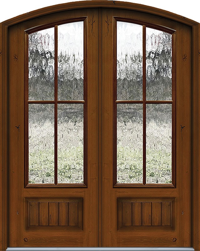 96" Arch Top 4 Lite SDL Mahogany/Alder Fiberglass Double Door