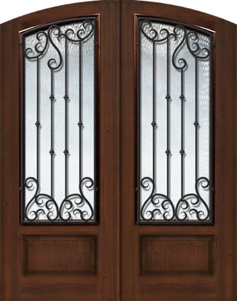 IMPACT | 96" Double Arch Top Valencia Wrought Iron Mahogany/Alder Door