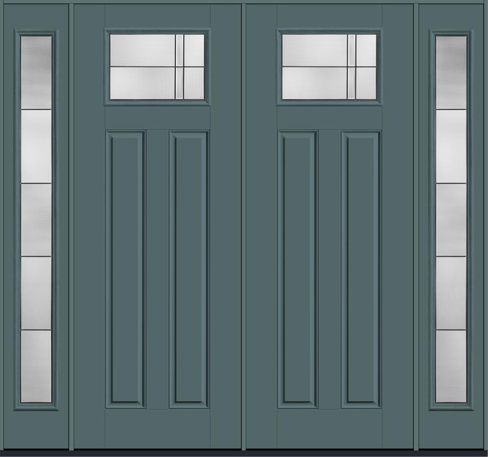 96" Axis Craftsman Top View 2 Panel Smooth Fiberglass Double Door, Full Sidelites