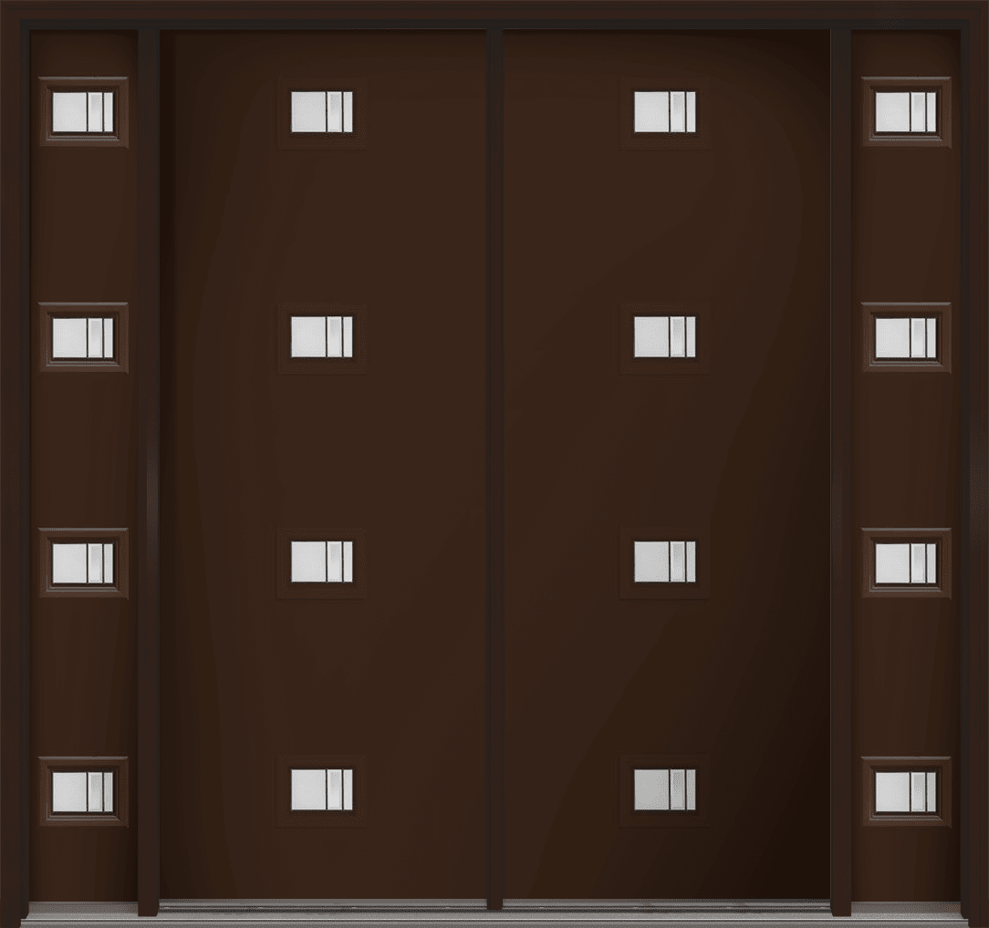 96" Axis Modern Pulse Echo 4-Lite Centered Smooth Fiberglass Double Door, Sidelites