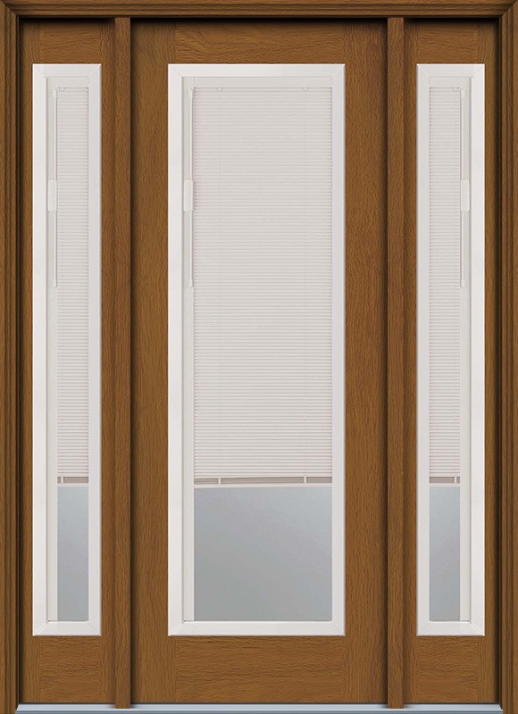 96" Blind Full Lite Contemporary Woodgrain Fiberglass Door, Sidelites, WBD Impact