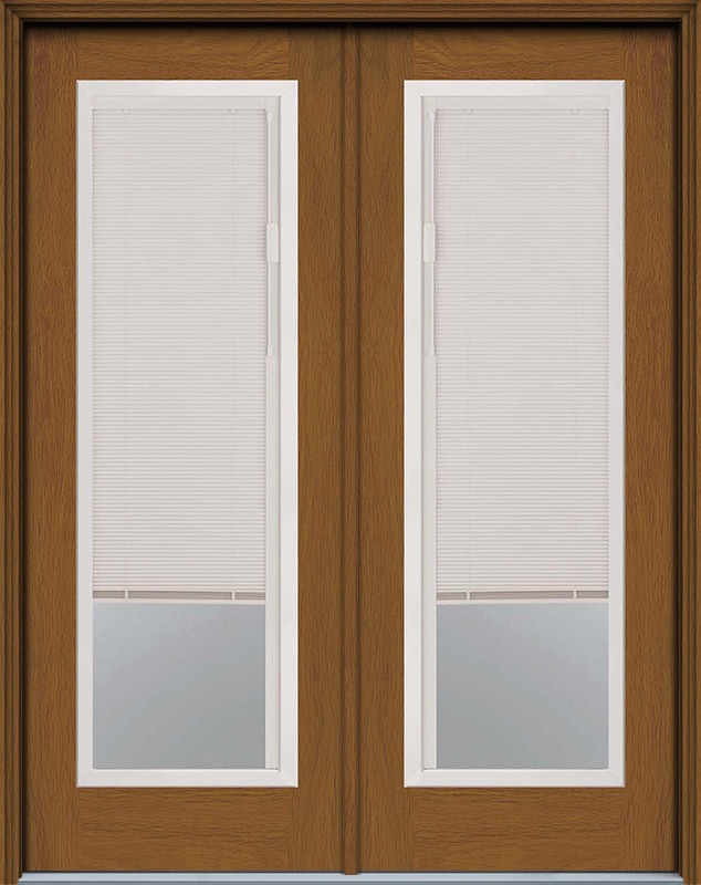 96" Blink Blinds Low-E Full Lite Contemporary Woodgrain Fiberglass Double Door, HVHZ Imapct