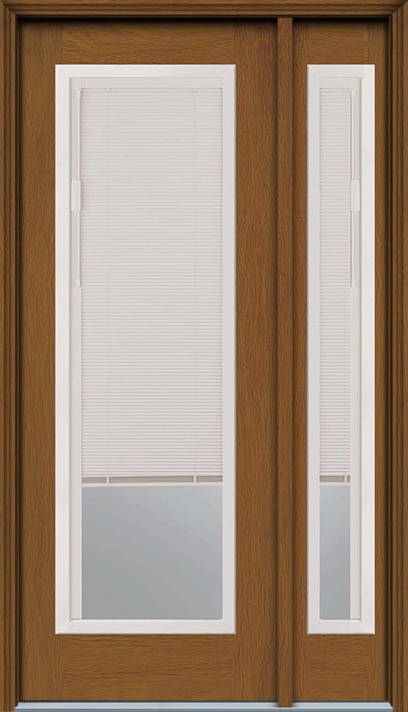 96" Blink Blinds Low-E Full Lite Contemporary Woodgrain Fiberglass Single Door, Sidelite, WBD Imapct