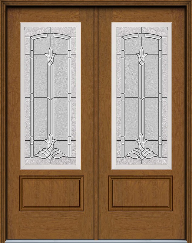 96" Bristol 3/4 Lite 1 Panel Woodgrain Fiberglass Double Door, WBD Impact