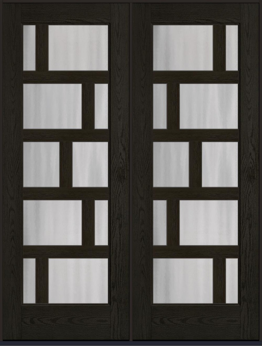 96" Chinchilla Contemporary Asymmetrical 10 Lite Right SDL Flat 3-1/2" Oak Full Lite Flush-Glazed Fiberglass Double Door