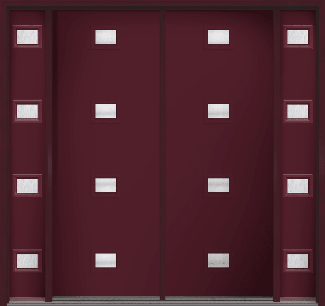 96" Chord Modern Pulse Echo 4-Lite Centered Smooth Fiberglass Double Door, Sidelites