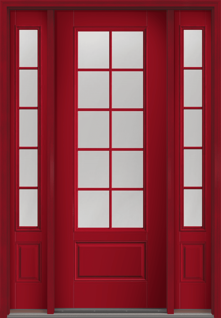 96" Clear Colonial 10 Lite Fixed Grilles Smooth 3/4 Lite 1 Panel Fiberglass Single Door, Sidelites