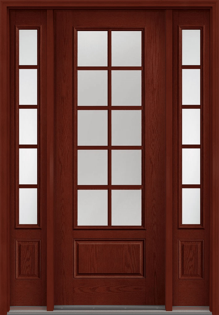 96" Clear Colonial 10 Lite SDL Oak 3/4 Lite 1 Panel Fiberglass Single Door, Sidelites