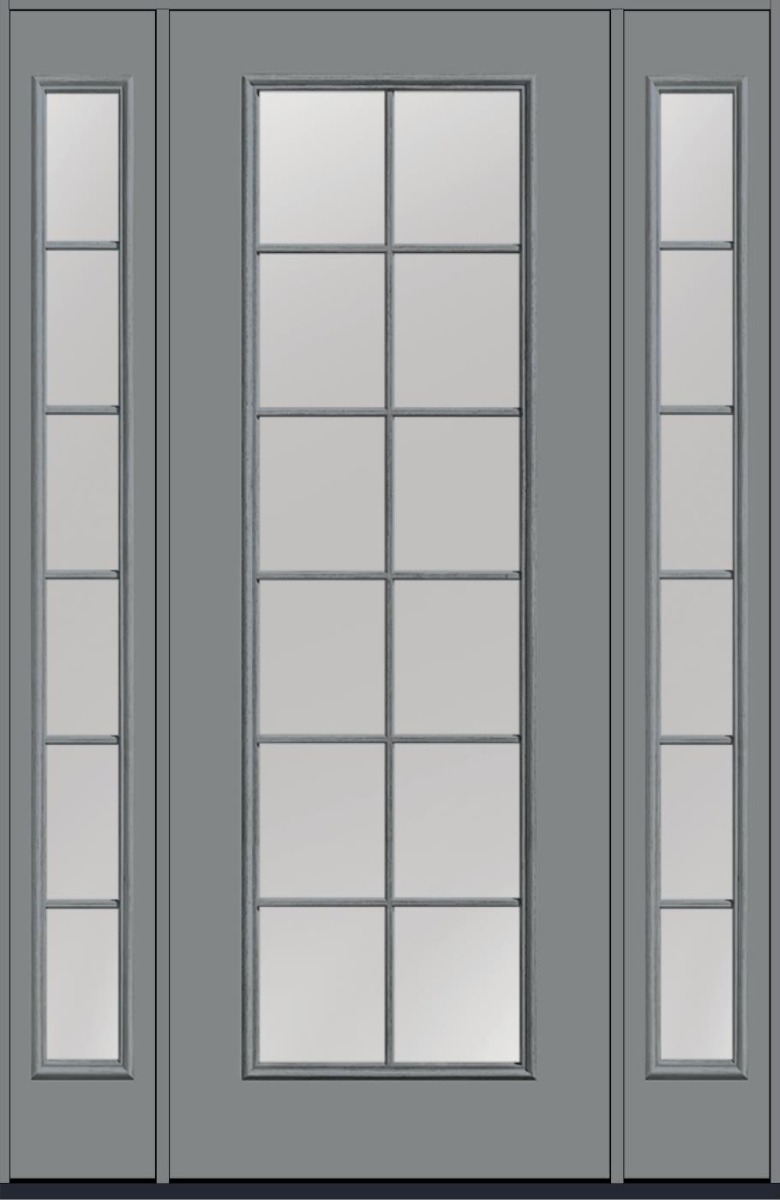 96" Clear Colonial 12 Lite Fixed Grilles Smooth Full Lite Fiberglass Single Door, Sidelites