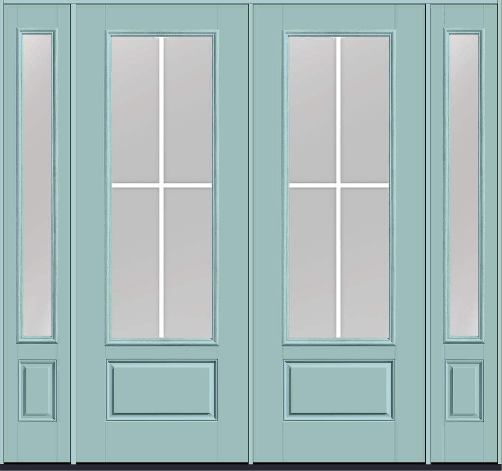 96" Clear Colonial 4 Lite Flat Bar GBG Smooth 3/4 Lite 1 Panel Fiberglass Double Door, Full Sidelites