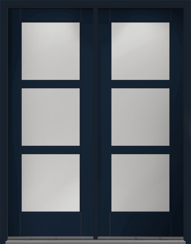96" Clear Contemporary 3 Lite SDL Flat 3-1/2" Smooth Full Lite Flush-Glazed Fiberglass Double Door