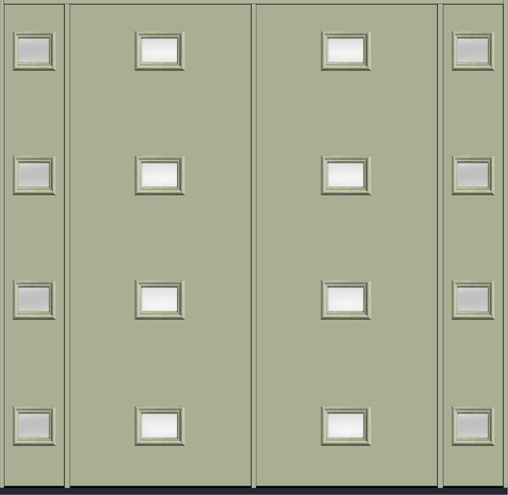 96" Clear Modern Pulse Echo 4-Lite Centered Smooth Fiberglass Double Door, Sidelites