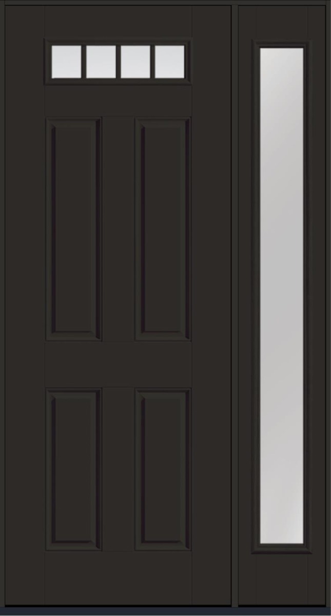 96" Clear Top View 4 Lite 4 Panel Fixed Grilles Smooth Fiberglass Single Door, Full Sidelite