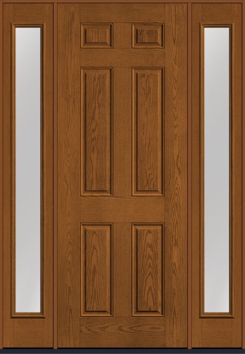 96" Colonial 6 Panel Oak Fiberglass Single Door, Full Sidelites