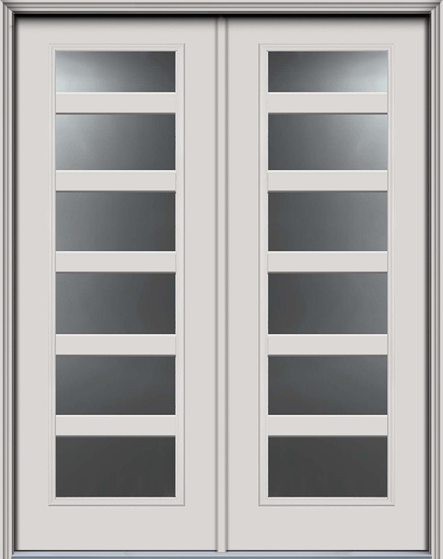 96" Contemporary Full Lite, 6 Lite Horizontal SDL Smooth Double Door