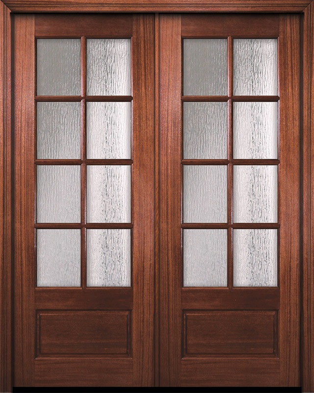 96" Double 8 Lite TDL DoorCraft Mahogany Door w/Textured Glass
