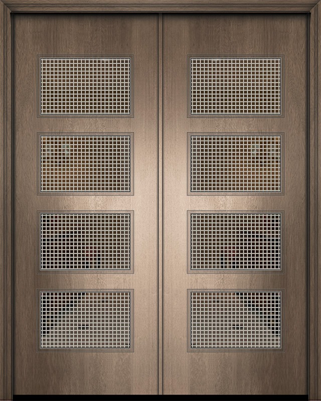 96" Double Santa Monica Mahogany Contemporary Door w/Metal Grid