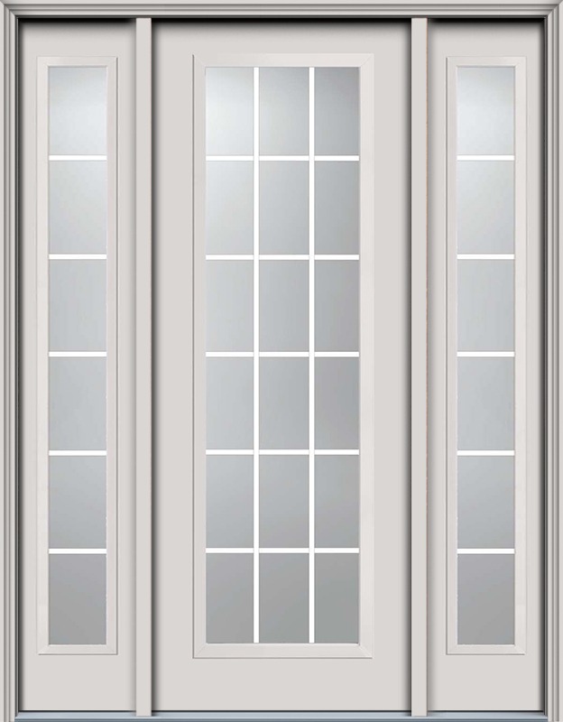 96" Full Lite, 18 Lite GBG Colonial Smooth Fiberglass Door, Sidelites, HVHZ Impact