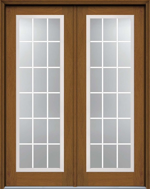 96" Full Lite, 18 Lite GBG Colonial Woodgrain Fiberglass Double Door, WBD Impact