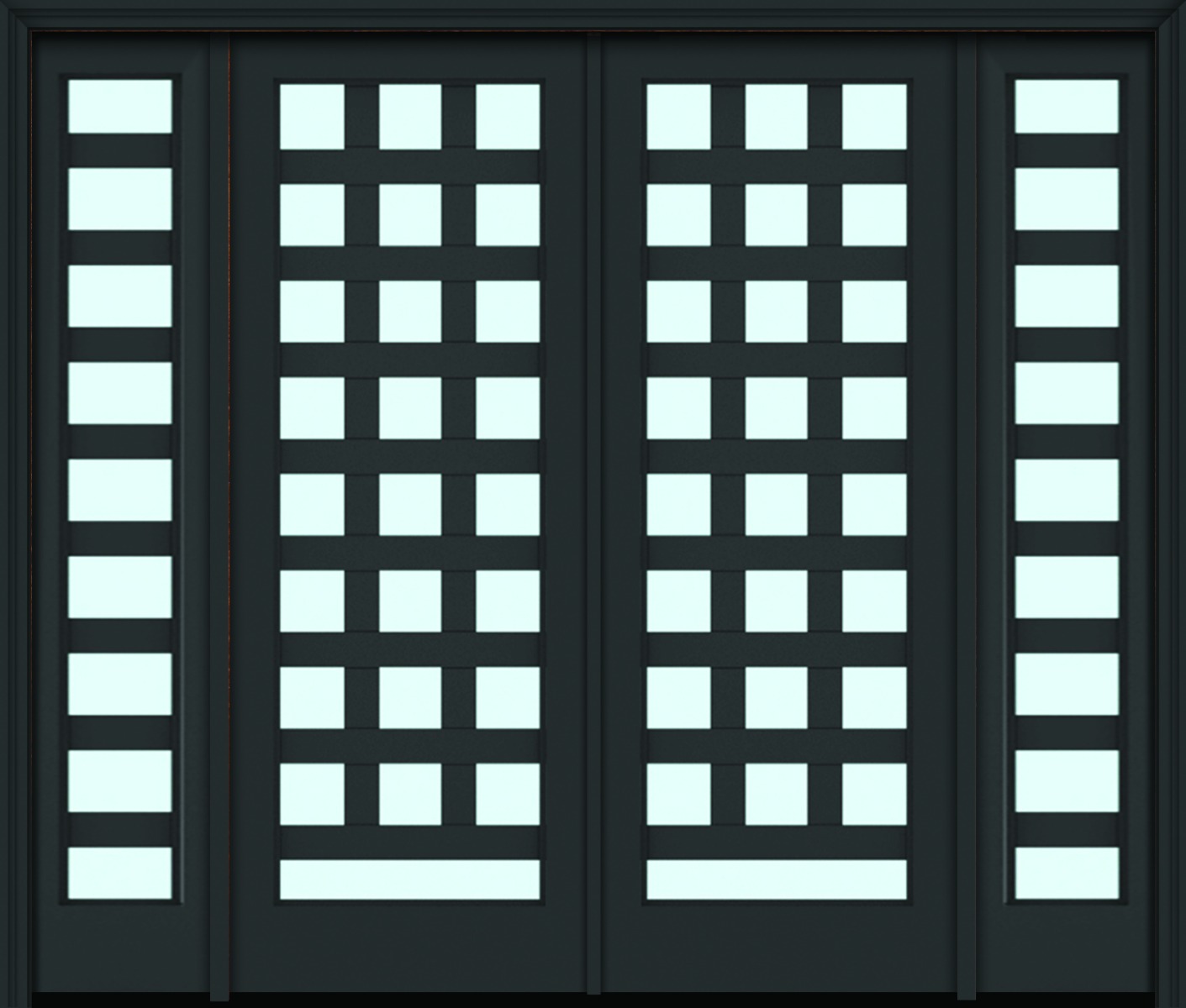 Impact 96" Full Lite 3.5" Designer SDL Barcelona Nova 90 Modern Smooth Fiberglass Double Door, Sidelites