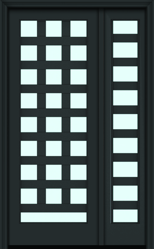 96" Full Lite 3.5" Designer SDL Barcelona Nova 90 Modern Smooth Fiberglass Single Door, Sidelite