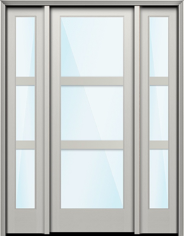 96" Full Lite 3 Lite Horizontal 3.5" SDL Nova 90 Modern Smooth Fiberglass Single Door, Sidelites