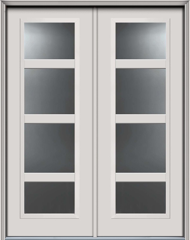 96" Full Lite, Horizontal 4 Lite SDL Contemporary Smooth Fiberglass Double Door, WBD Impact