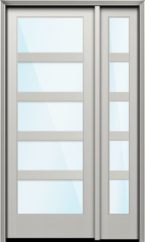 Impact 96" Full Lite 5 Lite Horizontal 3.5" SDL Nova 90 Modern Smooth Fiberglass Single Door, Sidelite