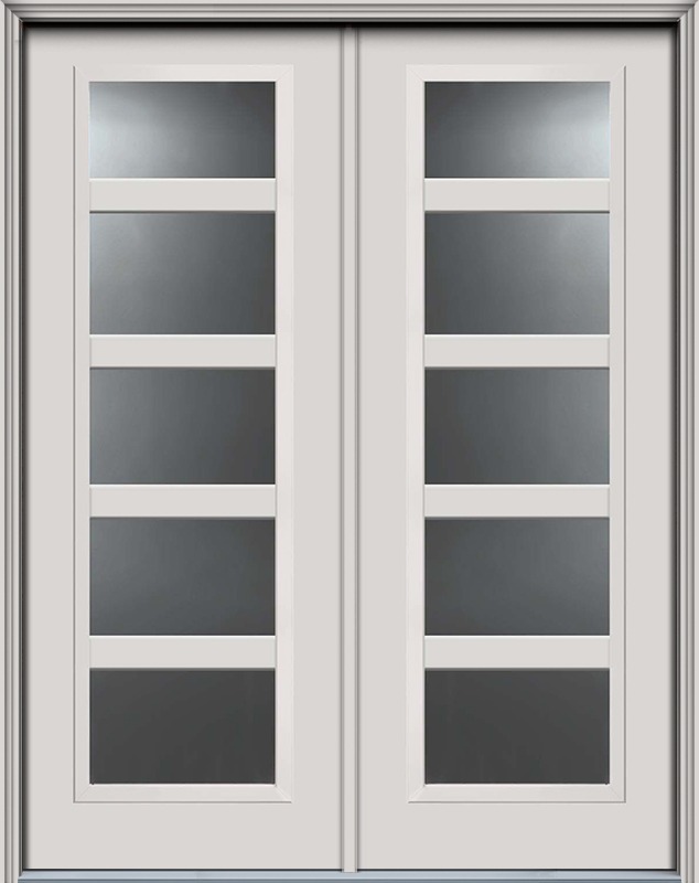 96" Full Lite, 5 Lite SDL Contemporary Smooth Fiberglass Double Door, HVHZ Impact