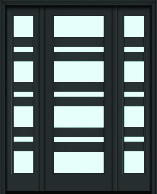 96" Full Lite 7 Horizontal Lite 5" SDL Nova 90 Modern Smooth Fiberglass Single Door, Sidelites