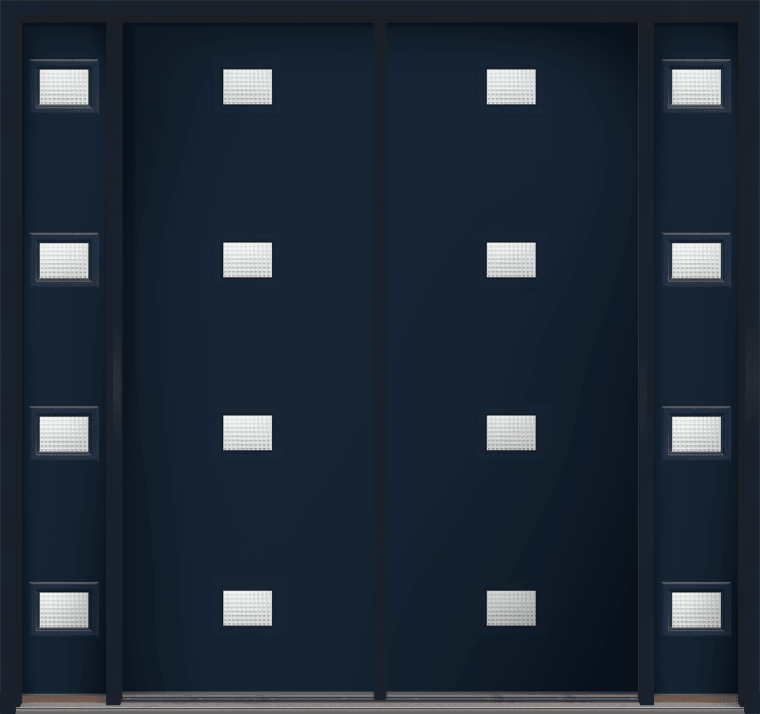 96" Geometric Modern Pulse Echo 4-Lite Centered Smooth Fiberglass Double Door, Sidelites
