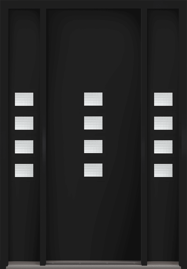 96" Geometric Modern Pulse Echo 4-Lite Middle Center Cluster Smooth Fiberglass Single Door, Sidelites