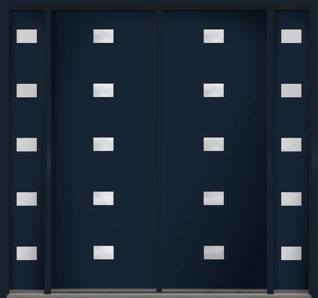 96" Rainglass Modern Pulse Echo 5-Lite Centered Smooth Fiberglass Double Door, Sidelites