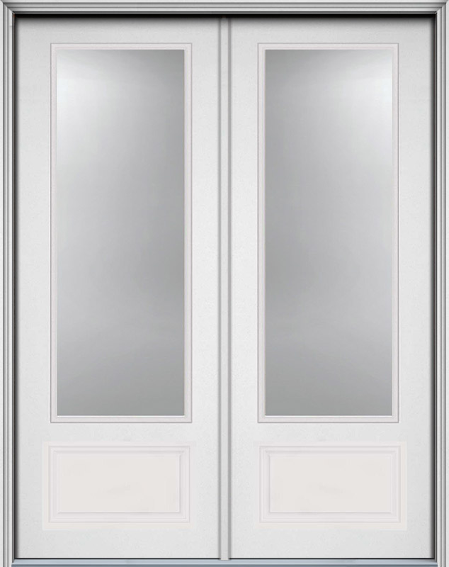 96" Low-E 3/4 Lite 1 Panel Modern Smooth Fiberglass Double Door, HVHZ Impact